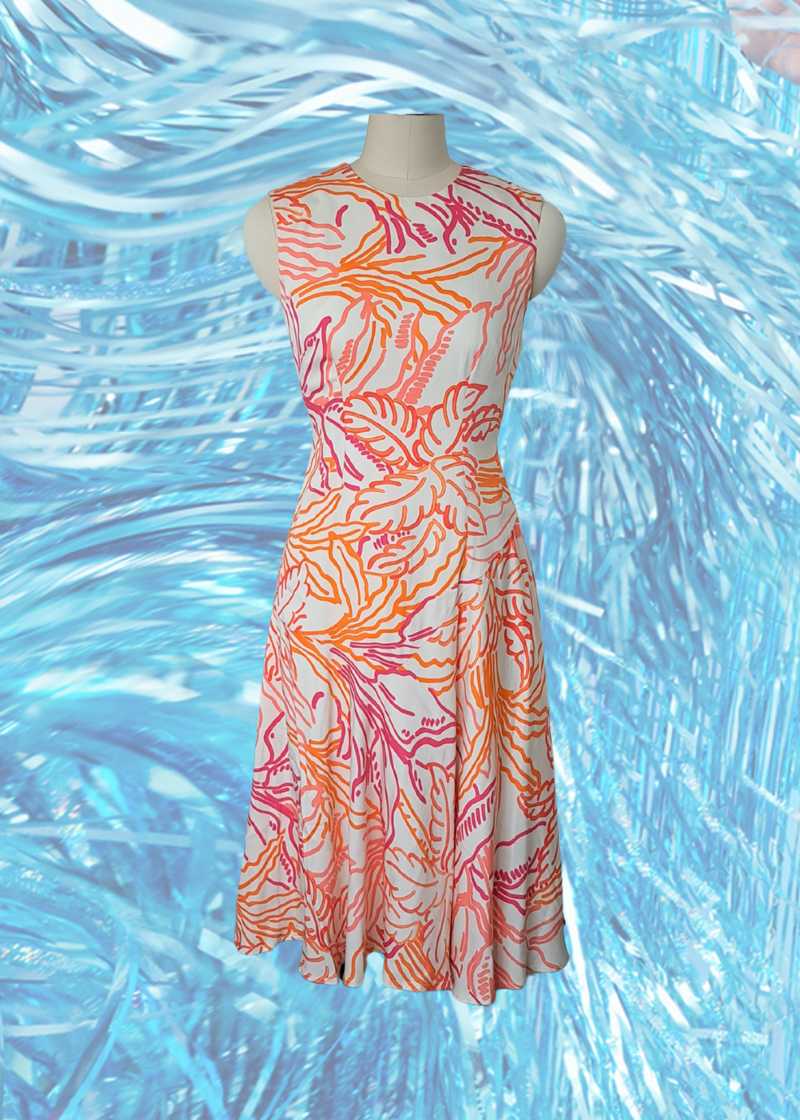 The Aquila Dress in Coral Drift made with premium satin viscose from Italy.